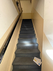 ...also bis sich die Haustüre öffnete. Jetzt fiel es mir siedend heiß ein, was ich über Amsterdam gelesen hatte: Die Treppenhäuser sind schmal und die Treppen steil. Über diese Treppe (nach oben wurde sie noch enger und hatte zudem noch Kurven) musste mein Fahrrad vier Stockwerke nach oben. Gott sei Dank half mir ab dem 2 Stock der Vermieter, so dass mein Fahrrad irgendwann auch oben war.