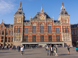 So war ich nach "nur" 13 Stunden Anreise auch schon in Amsterdam. Wobei es gar nicht so einfach war, den Bahnhof zu verlassen. Ich sollte irgendeinen Barcode vor den Scanner halten, damit die Barriere aufging. Hatte ich natürlich nicht, dachte ich zumindest. So wartete ich etwas, bis sich eine günstige Gelegenheit ergab, stellte mein Fahrrad auf das Hinterrad und schlupfte im Schatten einer Dame mit Kinderwagen unmittelbar hinter ihr durch die Schranke. Es piepte zwar ziemlich lauit, aber es interessierte zum Glück niemanden. Als ich später in meiner Unterkunft die Fahrkarte wegwerfen wollte, sah ich irgendwo auf dem Papier den QR-Code und den Hinweis, dass ich diesen QR-Code an der Barriere nutzen konnte, um diese zu öffnen. Zu spät gelesen, aber es gab ja auch andere Wege...