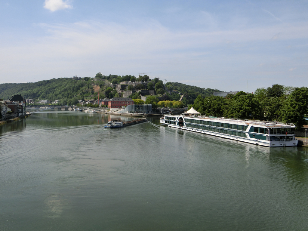 Uns so kam ich Namur immer näher und erreichte die Stadt gegen 12 Uhr. Hier sollte auch ein Fahrradgeschäft sein, in dem ich meinen Vorrat an Fahrradschläuchen wieder auffüllen konnte. In einer Bar fragte ich nochmal nach dem Fahrradgeschäft und hatte Glück, es war keine 500 m entfernt. Nochmal kurz gegen die Einbahnstraße gefahren und dann zu Fuß auf die Bahnhofseite gewechselt. Jetzt kam der schwierigste Teil: Aus dem Bahnhof kam eine Horde von Schülern, die wohl gerade aus einem Zug ausgestiegen waren. Ich musste diese, nicht endende wollende Horde queren. Irgendwann war ich dann durch und es kamen immer neue Schüler hinterher. Gerade noch rechtzeitig vor der Mittagspause erreichte ich das Fahrradgeschäft, kaufte zwei neue Schläuche (die ich natürlich auf meiner weiteren Reise dann glücklicherweise nicht brauchte) und brachte den Luftdruck in den Reifen noch auf Vordermann.