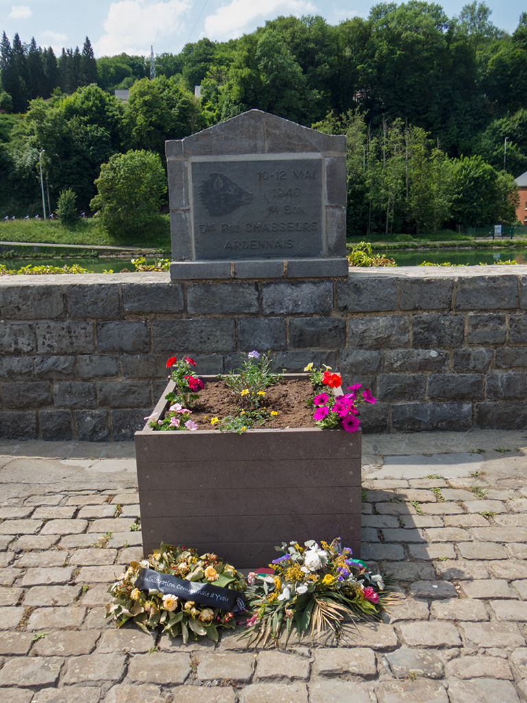Hier stand 1940 auch eine Brücke, die eine deutsche Vorhut am 15. Mai erreichte und versuchte zu erobern. Bei der Sprengung der Brücke vor dem Feind durch das Ardennen Jägerregiment 5 opferte sich Leutnant de Wispelaere von der unterstützenden Pioniereinheit.