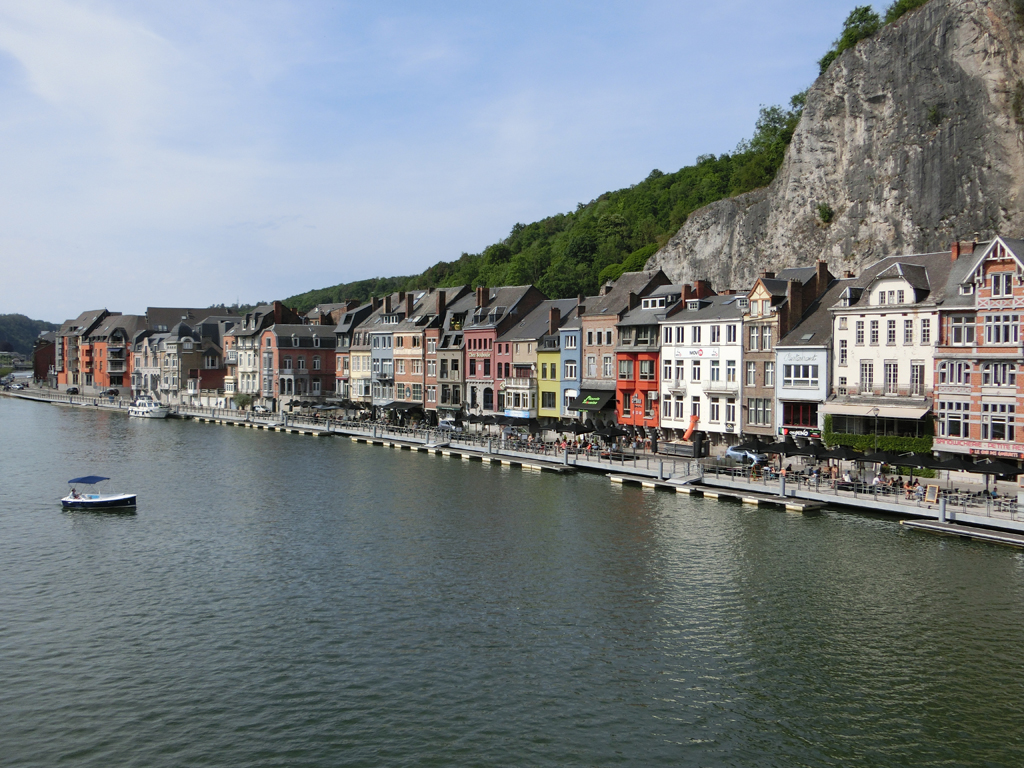 Bald erreichte ich mein heutiges Etappenziel Dinant. Es war schön, an der Uferstraße entlang zu radeln, wären da nicht diese komischen Geräusche gewesen. Es klang, als wenn man einen Klebestreifen abzieht. nur eben konstant. Es dauerte etwas bis ich draufkam, dass die Bäume an Straßenrand eine klebrige Substanz absonderten und die Straße damit benetzt war. Es war wirklich ein klebriger Belag auf der Straße, über den die Reifen rollten. Zumindest kein Reifenschaden, das hätte mir noch gefehlt. So konnte ich die Fahrt genießen, links die schöne Häuserreihe und rechts die Maas.